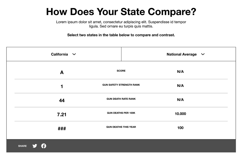 With ample opportunities to open the scorecard, users were never far from the core message: what do gun safety laws look like in your own state?